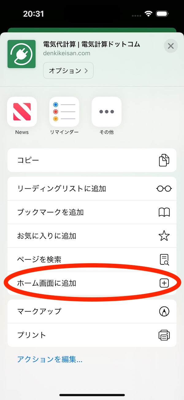 1. 「https://www.denkikeisan.com」を Safari ブラウザで開きます。